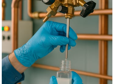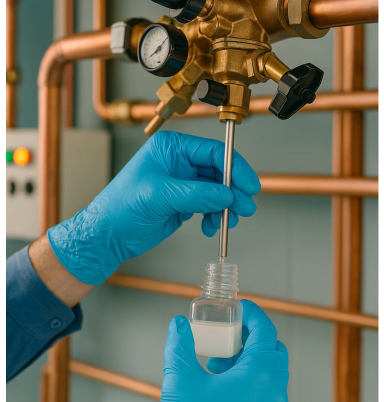 Wir nehmen mikrobiologische Wasserproben nach anerkannten Standards und sorgen für eine lückenlose Weiterleitung an akkreditierte Labore.